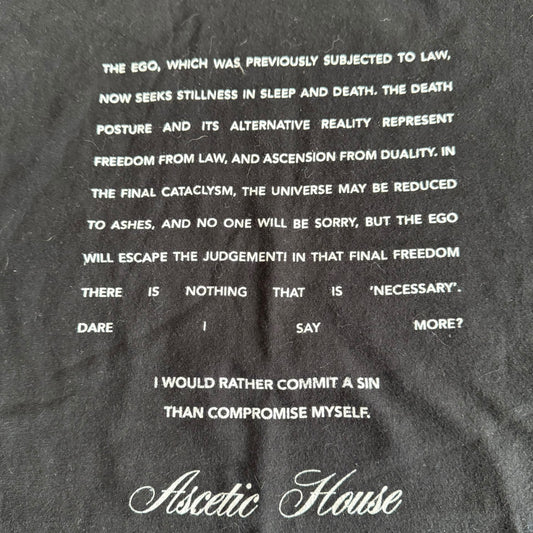 Ascetic House Record Label White T-Shirt Size L Alister Crowley Destruction Unit Body Of Light