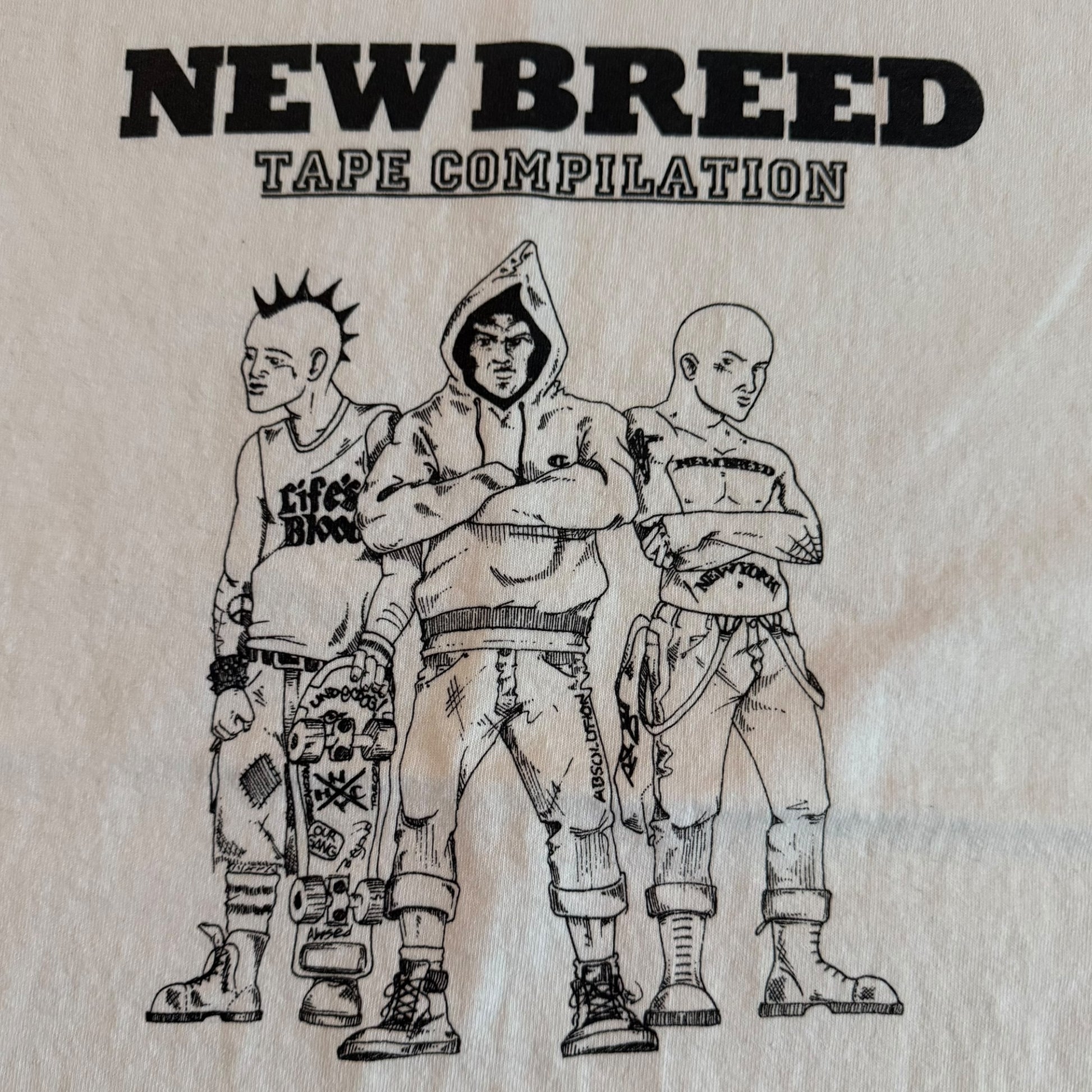New Breed! Tape Compilation White T-Shirt Size L Outburst Life's Blood Our Gang Uppercut